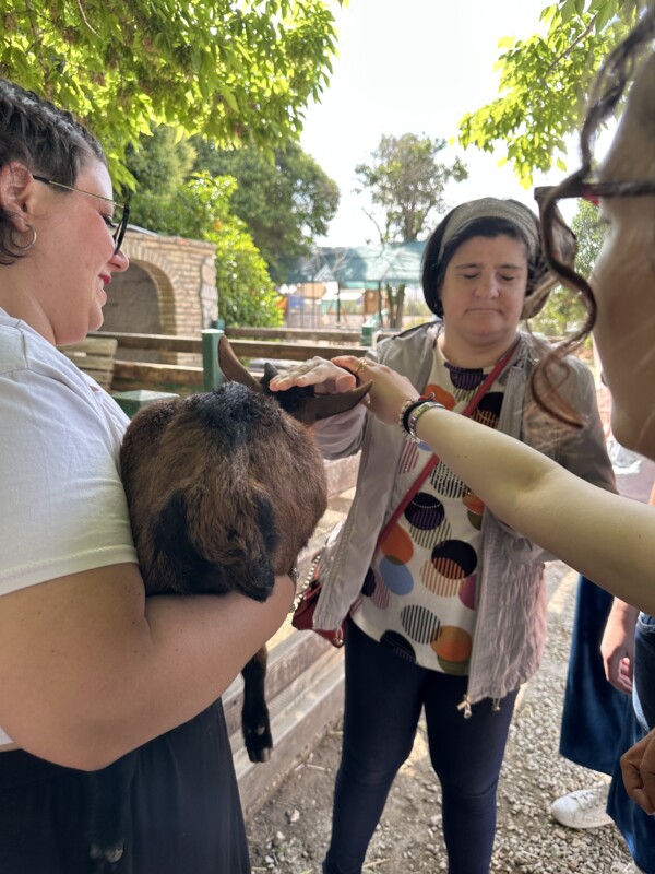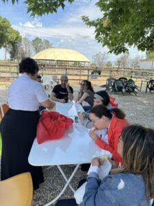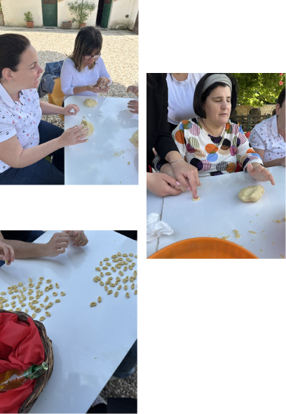 Durante la visita alla Fattoria Didattica Emmaus, i “ragazzi” sono entrati in contatto con alcuni animali, accarezzandoli e riconoscendone i versi. Inoltre hanno gustato una merenda a base di pane ed olio e successivamente si sono dedicati all’attività del giorno : la realizzazione di cavatelli a mano, utilizzando farina di semola ed acqua.