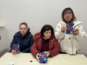 A partire da metà novembre i nostri “ragazzi”, come ogni anno, si sono impegnati a realizzare i cartoncini augurali da offrire a Fondatori, Partecipanti e Sostenitori, inserendoli nella Comunicazione Natalizia, con l’aiuto di Educatori e Volontari in Servizio Civile.