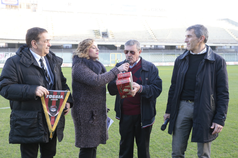 Peccato che i gravi disordini del dopo-partita sono prevalsi nella cronaca dei giorni successivi, facendo passare sotto silenzio la nostra presenza allo Stadio e lo scambio di doni tra il Presidente della Fondazione, il Presidente Onorario e l’Amministratore Delegato del Foggia-Calcio.
